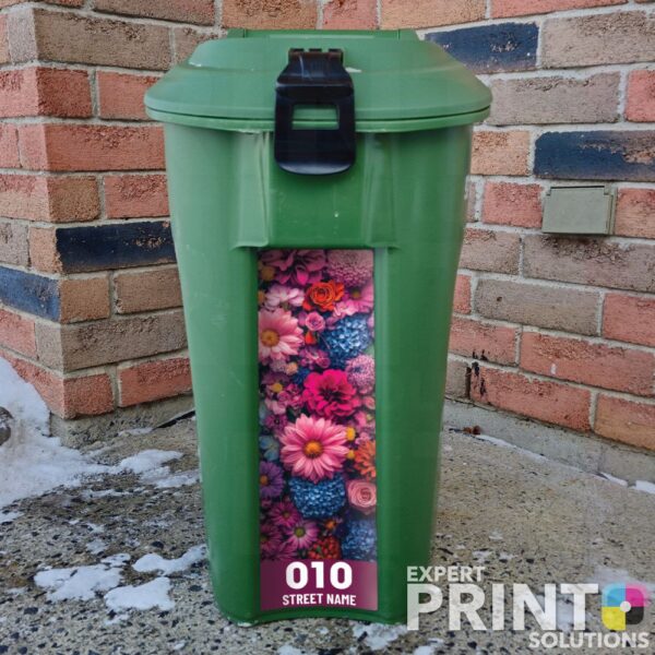 Personalize your green bin (for organics collection) by decorating it with a “colorful floral arrangement showcasing a variety of flowers” customized sticker, adding your address! This simple step makes it easy to identify your bin, especially on windy days when everything gets blown around. Unleash your creativity, think vibrant colors, fun designs, or even stickers that reflect your personality! By personalizing your bin, you’re not just making it visually appealing; you’re helping your neighbors know which bin is yours during collection day.