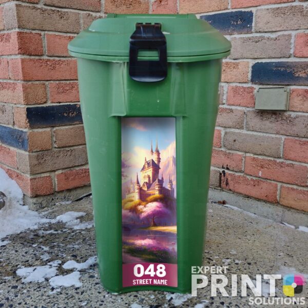 Personalize your green bin (for organics collection) by decorating it with a “magical land and enchanted forests castle” customized sticker, adding your address! This simple step makes it easy to identify your bin, especially on windy days when everything gets blown around. Unleash your creativity, think vibrant colors, fun designs, or even stickers that reflect your personality! By personalizing your bin, you’re not just making it visually appealing; you’re helping your neighbors know which bin is yours during collection day.