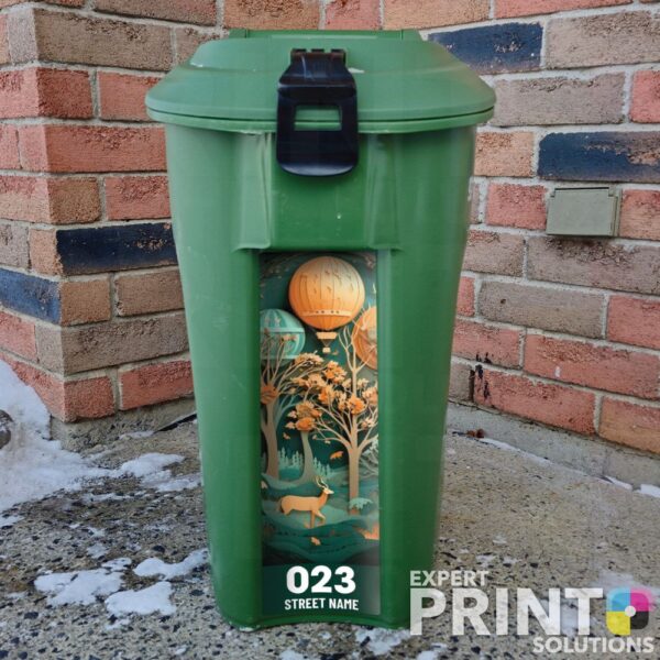 Personalize your green bin (for organics collection) by decorating it with a “paper art with hot air balloon flying over trees and deer” customized sticker, adding your address! This simple step makes it easy to identify your bin, especially on windy days when everything gets blown around. Unleash your creativity, think vibrant colors, fun designs, or even stickers that reflect your personality! By personalizing your bin, you’re not just making it visually appealing; you’re helping your neighbors know which bin is yours during collection day.